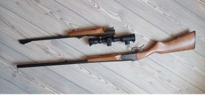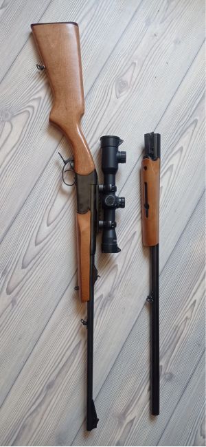 Всех приветствую. Продам в соответствии с законодательством карабин МР-18МН с двумя стволами калибра: 223rem, 12х76. Длинна стволов 600 и 710мм соответственно. Карабин 2018 года выпуска, куплен новым 2021г в магазине 13 калибр. Настрел нарезного - пачка кентавра, настрел гладкого - 10 выстрелов. Карабин не пилился и не точился, единственное вмешательство - антабка в цевье нарезного под сошки. Установлен прицел на быстросъемных кольцах Пилад 4х32 LGG с сеткой тонкий крест.