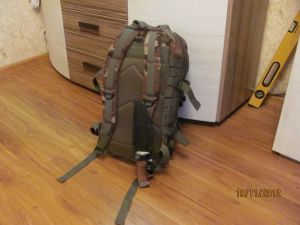 У меня такой, на 50л. Производитель MIL-TEC,Германия.Брал в Рыбинске в "Офицере" 2150. Довольно удобен, два отделения, раскрываются до самого дна, можно напихать много чего. Внутри пленка, не промокнет. Фурнитура на вид и по очучениям, надежная.Спина не то чтобы жесткая, но не сминается, форму держит. На ней же отделение на липучке. Под чего конкретно не знаю, но думаю можно и питьевую систему поместить и пластину титановую для защиты спины :yes: Там же в "офицере" есть и на 30л, но мне показался маловат, цена 2000р, кажется, давно был, не помню точно. |