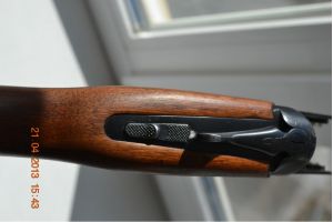 поменян приклад и грамотно подогнан к железу, что бы не появлялась трещинка на дереве снова, стволы пере воронены "клевером" после охоты требуют ухода в виде масленого чего нибудь,со снятым цевьем шата блока стволов нет! хром на месте в данные момент следы пластика около патронников- мне честно лень чистить, тем более продавать задумал.