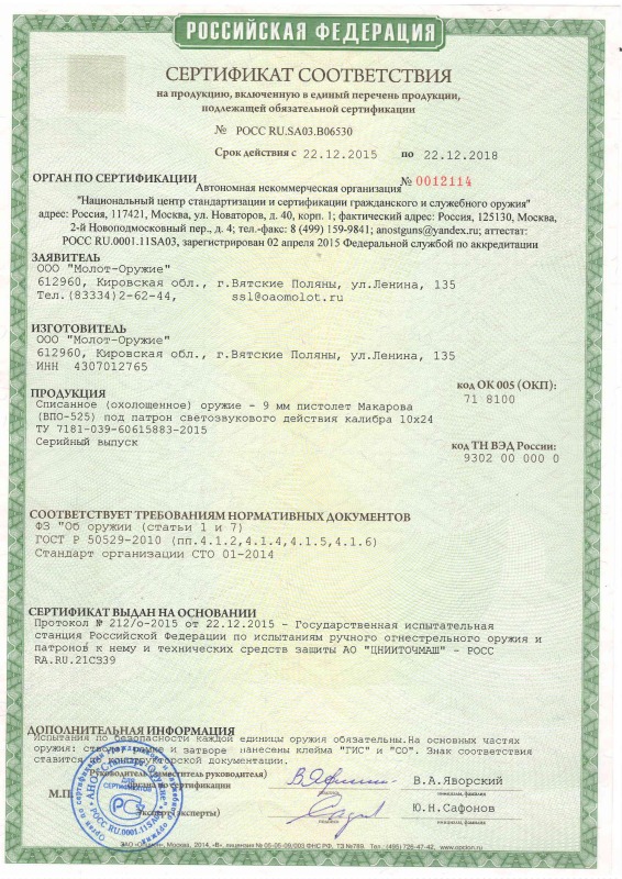 nik67 писал(a): Сигнальник и есть - сигнальник! ВПО-525 - не сигнальник. Это списанное (охолощенное) оружие. |