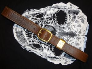 Ремень из буйвола 6мм, ширина 44мм, длинна 1320, прошивка нитью, пряжка и тренчик латунные, с эффектом ковки,